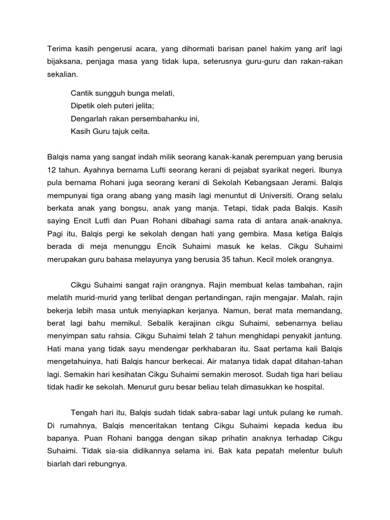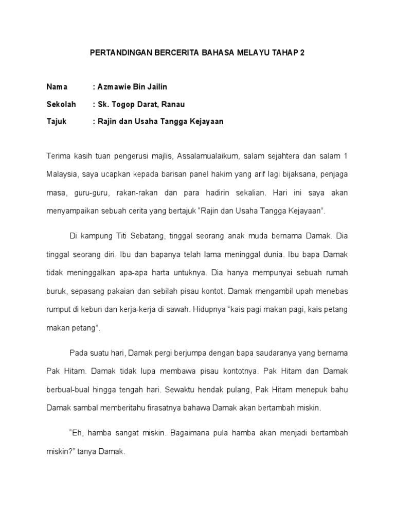 Mohd soffian sk jalan panglima bukit gantang no tel. Contoh Teks Pertandingan Bercerita Bahasa Melayu Sekolah Rendah Tahap 2. Teks Bercerita Bahasa Melayu Tahap 1 Vounstq.