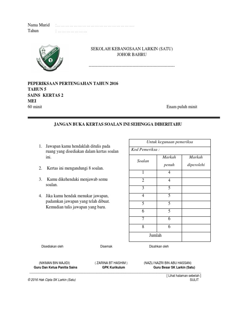 Senarai Peperiksaan Pertengahan Tahun Sains Tahun 5 Yang Terbaik Khas Untuk Ibubapa Cetakkan Pekeliling Terbaru Kerajaan